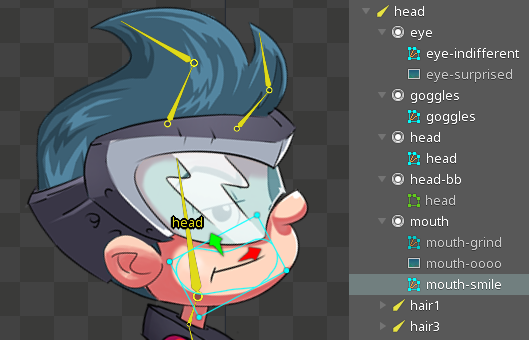 In the Spine runtimes, Attachments are objects that can be placed in a Slot to follow a Bone; They move according to a Bone's transform (rotation, position, scale).