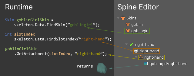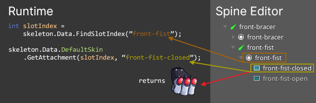 Attachment closedHandAttachment = foundSkin.GetAttachment(slotIndex, placeholderName);